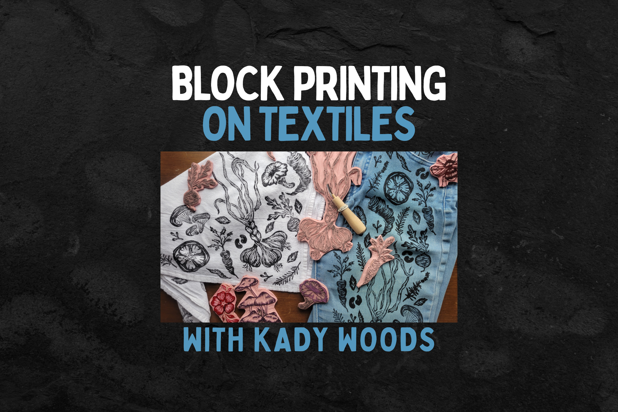 Block printing with rubber blocks (sometimes referred to as linocut) is a fun and accessible way to customize clothing, tote bags, and other textiles. In this class, we’ll begin by sketching a design on paper, then walk through how to transfer that design onto a carving block. You’ll receive instruction on carving techniques, followed by printing using textile-specific inks. Take the block home so you can continue printing on your own!