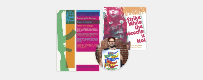 Join us in the R&D Store for an evening with Josh MacPhee and key players of indie publisher Common Notions, in a conversation moderated by MCLA Professor of Art Melanie Mowinski. MacPhee is joined by Kennedy Block, co-author of Strike While the Needle is Hot, and Malav Kanuga, Common Notions’ publisher. Common Notions Press publishes books that provide timely reflections, clear critiques, and inspiring strategies that amplify movements for social justice, and MacPhee has published two titles with them this year: Strike While the Needle is Hot: A Discography of Worker’s Revolt (in September) and Armed by Design (in January). The talk will be preceded by a listening party featuring the vintage, working-class music of labor movements featured in their book. Over the course of his career, MacPhee has created a composite work life that merges elements of designer, artist, author, historian, and archivist. He is a founding member of the Justseeds Artists’ Cooperative, and co-founder of Interference Archive, a library, exhibition, event, and research space in Brooklyn dedicated to the exploration of social movement culture. About the Artist: Josh MacPhee has been collaboratively making, researching, and collecting political art for over 20 years. His solo exhibition, We Want Everything, was hosted by the Cleveland Institute of Art in 2022.