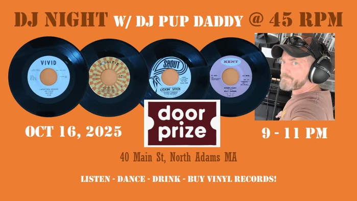 DJ Pup Daddy will be back at Door Prize on October 16th and will be spinning soulful 45s along with some Latin beats, rockabilly twangers and some jazzy jams!