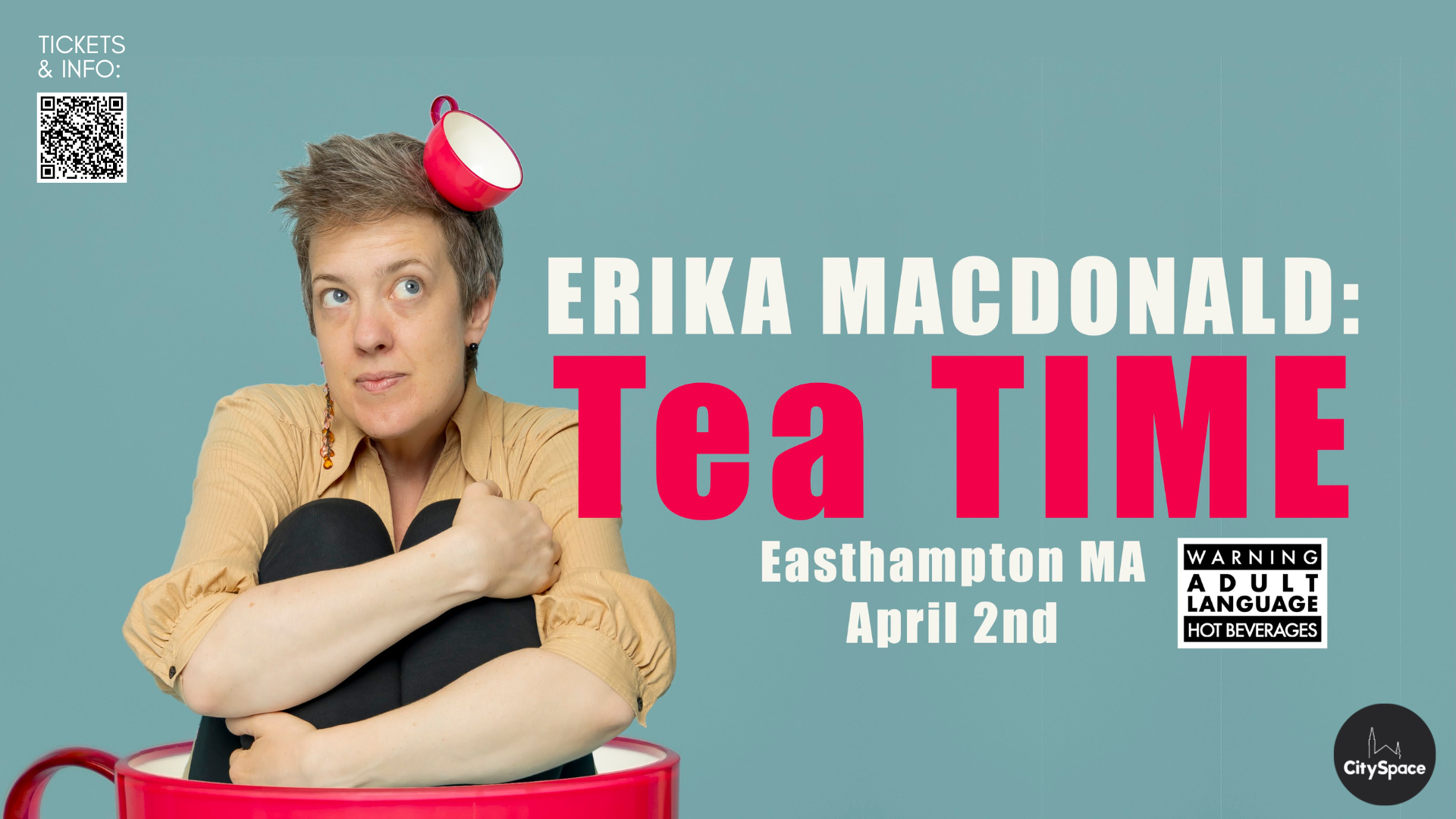 In this 60-minute one-woman show, Erika MacDonald plugs in her electric kettle and makes cup after cup of tea in a way that will change your relationship with time forever... or at least for the hour. At Tea TIME, you’ll be chanting one minute and closing your eyes the next. You’ll cry some, but laugh more. Whistle if you can. Hum when the time comes. Don’t worry, you’ll know.