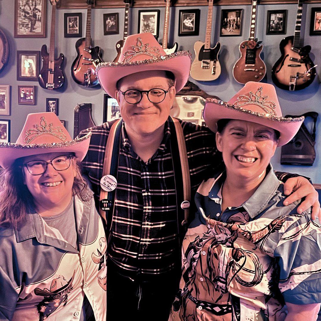 Get ready for some twang with a twist! Honkytonk Queer Tones (Emmett Troxel, Kim Hoff, and Jess Martin) reimagine classic country hits through a queer and political lens—songs you’ll know, delivered with defiance, joy, and plenty of glitter. Country music may have a history of shutting folks out, but we’re cracking the door wide open and dancing right through it. Proudly waving the queer flag in a space that isn’t always welcoming, Honkytonk Queer Tones turn familiar tunes into bold anthems of love, resistance, and fun. Come stomp, sing, and holler along—yee-haw and queer joy guaranteed!
