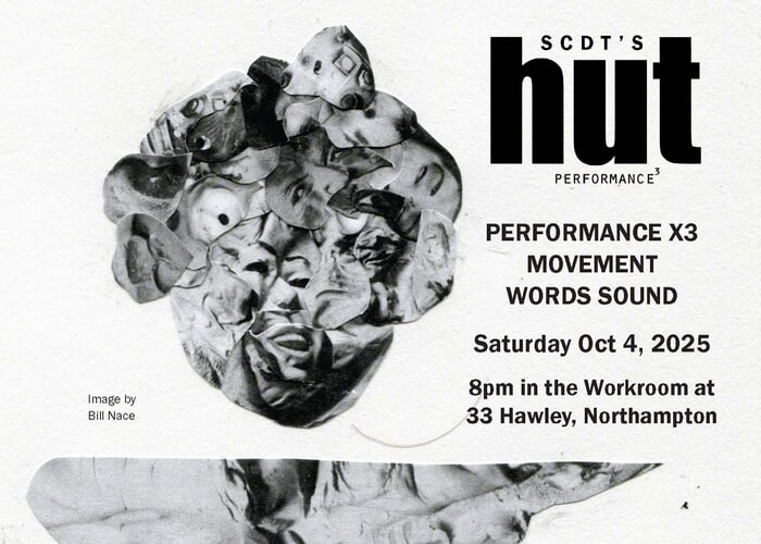 HUT is known for offering audiences a rare opportunity to encounter new artistic forms side by side.For 14 seasons, HUT has been a hub for experimentation in Western Massachusetts, presenting both internationally acclaimed artists and local innovators. Each evening features three artists working in movement, sound, and words, giving audiences a chance to experience performances they may never have encountered otherwise. By bridging disciplines and communities, HUT reimagines what live performance can be and who it can reach.