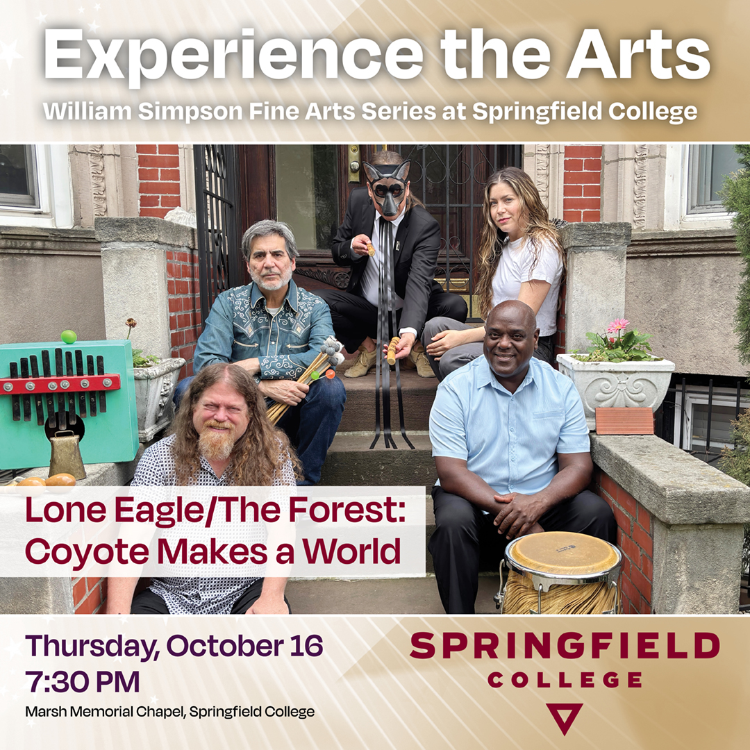 As the central figure within Indigenous storytelling traditions of the Interior Northwest, Coyote navigates the tenuous and tumultuous present in Coyote Makes a World, a collaborative multimedia project between storyteller/vocalist čnaq’ymi (lone eagle) and The Forest, a cooperative percussion ensemble featuring Gustavo Aguilar, Leah Bowden, Andrew Drury, and Michael Wimberly. Centered on stories that embody the qualities of long held Native storytelling traditions, here Coyote encounters the contemporary crises of our times, oblivious to the consequences of his actions in ways that are familiar, unsettling, and often humorous. Set within a dynamic rhythmic landscape layered with songs and mesmerizing vocalizations, Coyote Makes a World reflects the world we’ve made while taking the listener to places they’ve never before encountered.