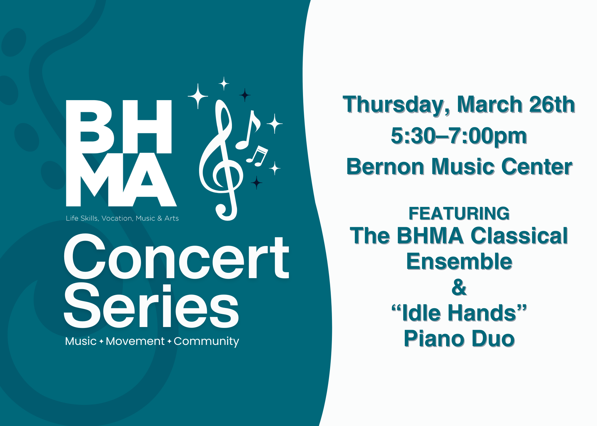 Berkshire Hills Music Academy presents a concert featuring the BHMA Classical Ensemble and the “Idle Hands” piano duo. Enjoy an inspiring evening of classical music, community connection, and authentic artistic expression with music performed by talented BHMA students and instructors. Free entry, suggested donation at the door.