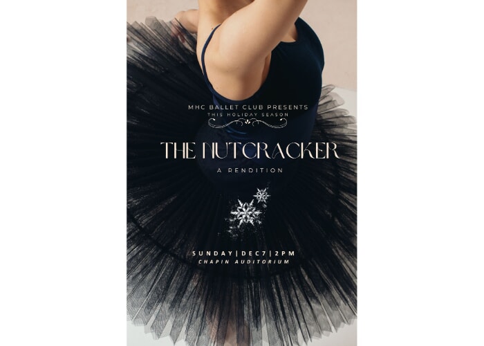 The MHC Ballet Club is thrilled to announce our performance of "The Nutcracker" in Chapin Auditorium from 2:00 - 3:00 PM on December 8th. We will be showing a condensed version of the classic performance, and we are so excited to show you all! Doors open at 1:30 and this event is free for everyone (non-MHC guests included). Please register on Embar... [see website link below for more]