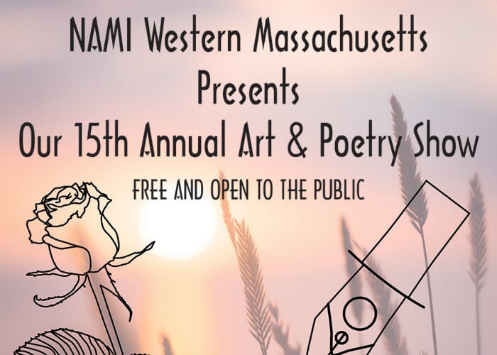 NAMI Western Massachusetts (The National Alliance on Mental Illness of Western Massachusetts) will hold an opening reception for its 15th Annual Art and Poetry Show featuring the work of artists living with mental health conditions on Wednesday, April 1 from 6 to 8 p.m. at the Chicopee Public Library, 449 Front St. The reception and parking adjacent to the library are free. The exhibit runs through the end of April.