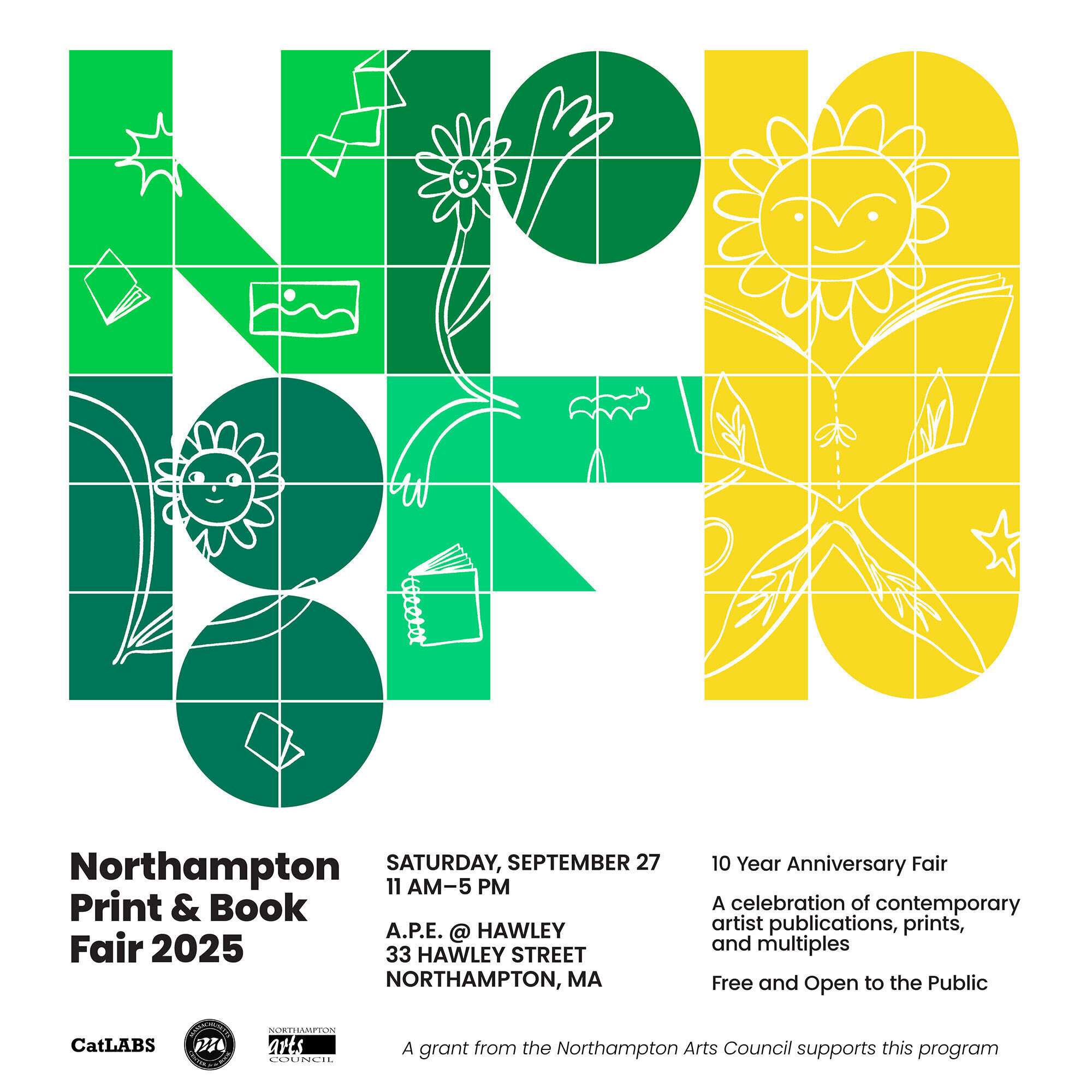 On September 27th, the Northampton Print and Book Fair (NPBF), featuring 35 artists, will fill the expansive 3,800 sq ft Workroom space at 33 Hawley with self-published artists’ books and multiples: zines, comics, books of poetry, risograph prints, mini sculptures and ceramics, wearable art, stickers, and more; reflecting the breadth of the artistic practices of self-publishing artists. Visitors can purchase art directly from artists in a free, fun, approachable setting that combines the format of a flea market with an art show.