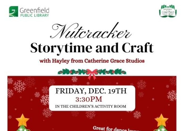 This program, made possible through the generosity of the Friends of the Greenfield Public Library, is free and recommended for children ages 3-8.