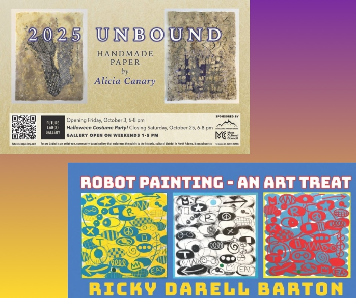 Two new exhibits are coming to Future Labs Gallery in October. 2025 Unbound - Alicia Canary and Robot Painting - An Art Treat - Ricky Darell Barton Opening reception October 3rd 6pm - 8pm