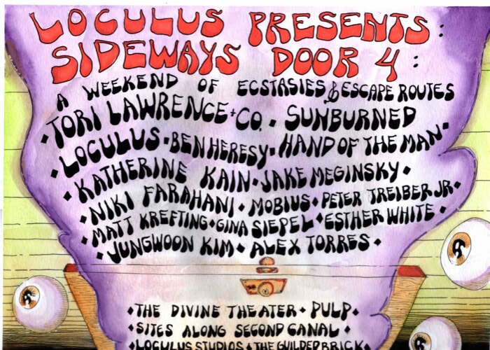 LOCULUS presents the fourth annual-ish SIDEWAYS DOOR festival September 19 - 21, 2025! SIDEWAYS DOOR brings together local and visiting artists for three days of performances, classes, and talks in Holyoke MA. This year we will also be celebrating our 10 year birthday!