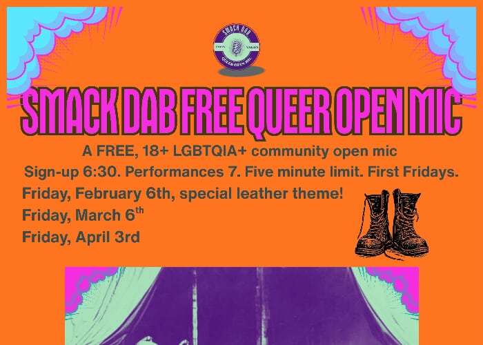 Smack Dab Queer Open Mic First Friday of the month Sign-up at 6:30, performances start at 7!