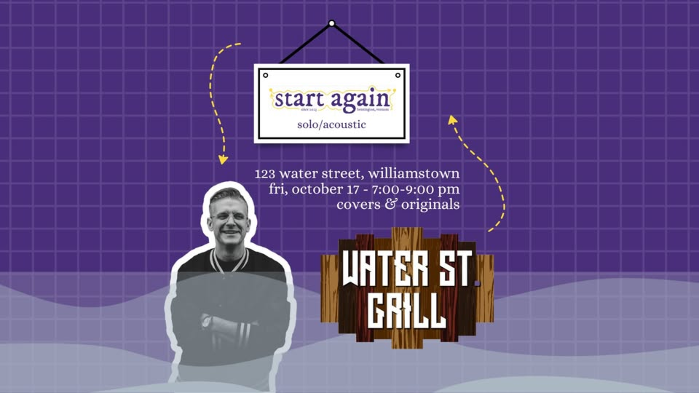 Come join Start Again for a solo/acoustic set as he plays at Water St. Grill for the first time!!!