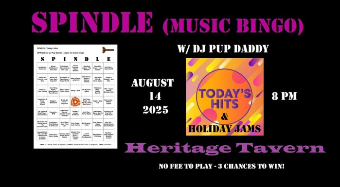 Pup Daddy Productions & Olde Heritage Tavern team up to bring you a fun Thursday night game of SPINDLE (music bingo) w/ DJ Pup Daddy.