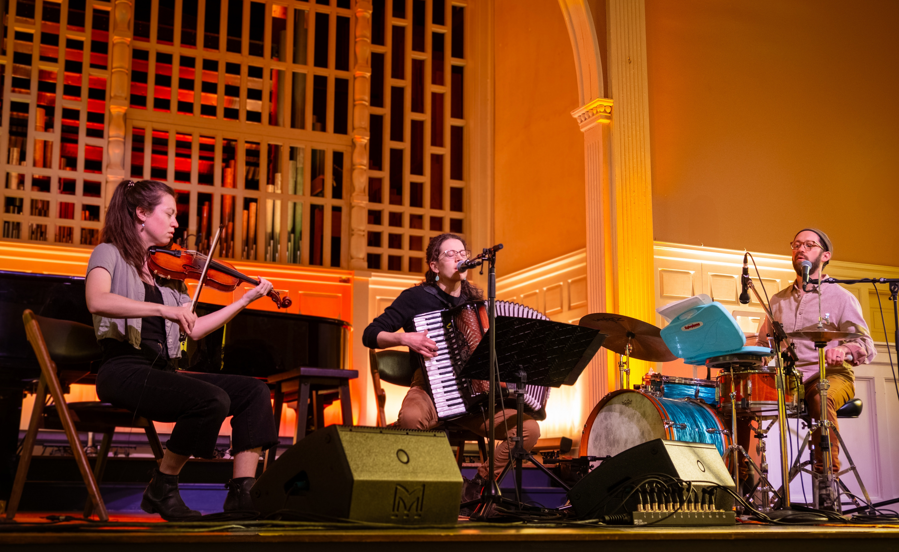 Ariel is a core organizer of KlezCummington, an annual Jewish cultural festival dedicated to the creation and deepening of Yiddish diasporic music and cultures, as well the People's Puppet Parade, a community-based, devised spectacle theater processional exploring radical histories and communal expressions of grief and joy. Ariel is a founding member of klezmer bands A Glezele Tey, Burikes, and Khaloymes, performing fresh takes on traditional klezmer tunes and Yiddish songs, leading community jams and zingerays (Yiddish sing-alongs), and accompanying Yiddish dancing and theatrical productions, including Jenny Romaine/Great Small Work’s “Three Cookbooks in the Garden: A stage illusion”, The Un-nameable Children's Project “Across the Ninefold River”, and A.C. Weaver’s “Inhabiting the Tsadik of the Woods”. Ariel also collaborates with Der Tkhines Proyekt, setting old Yiddish prayers (written for and by women and gender non-conforming folks) to new melodies, and composing new works to be sung in the streets, around kitchen tables, and anywhere they can be used to help tear down systems of injustice to build a frayer velt — a freer world.