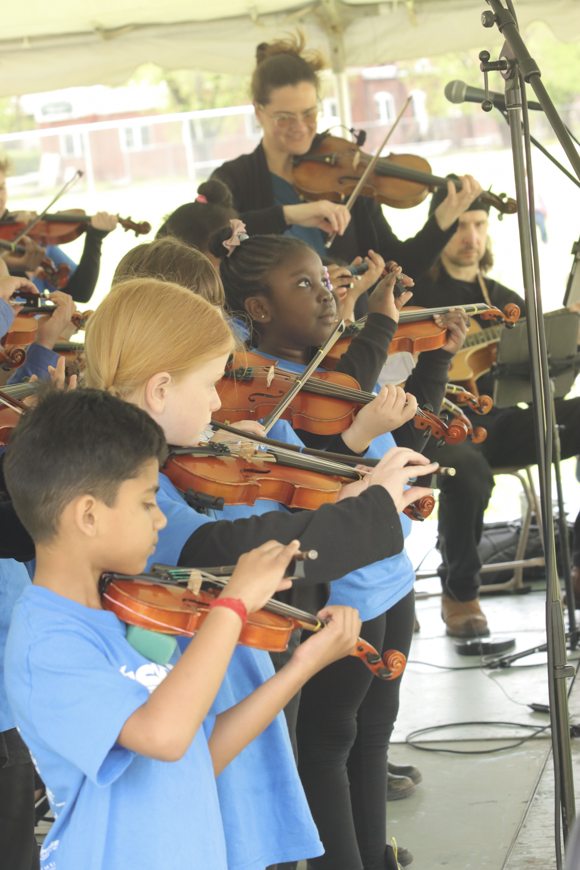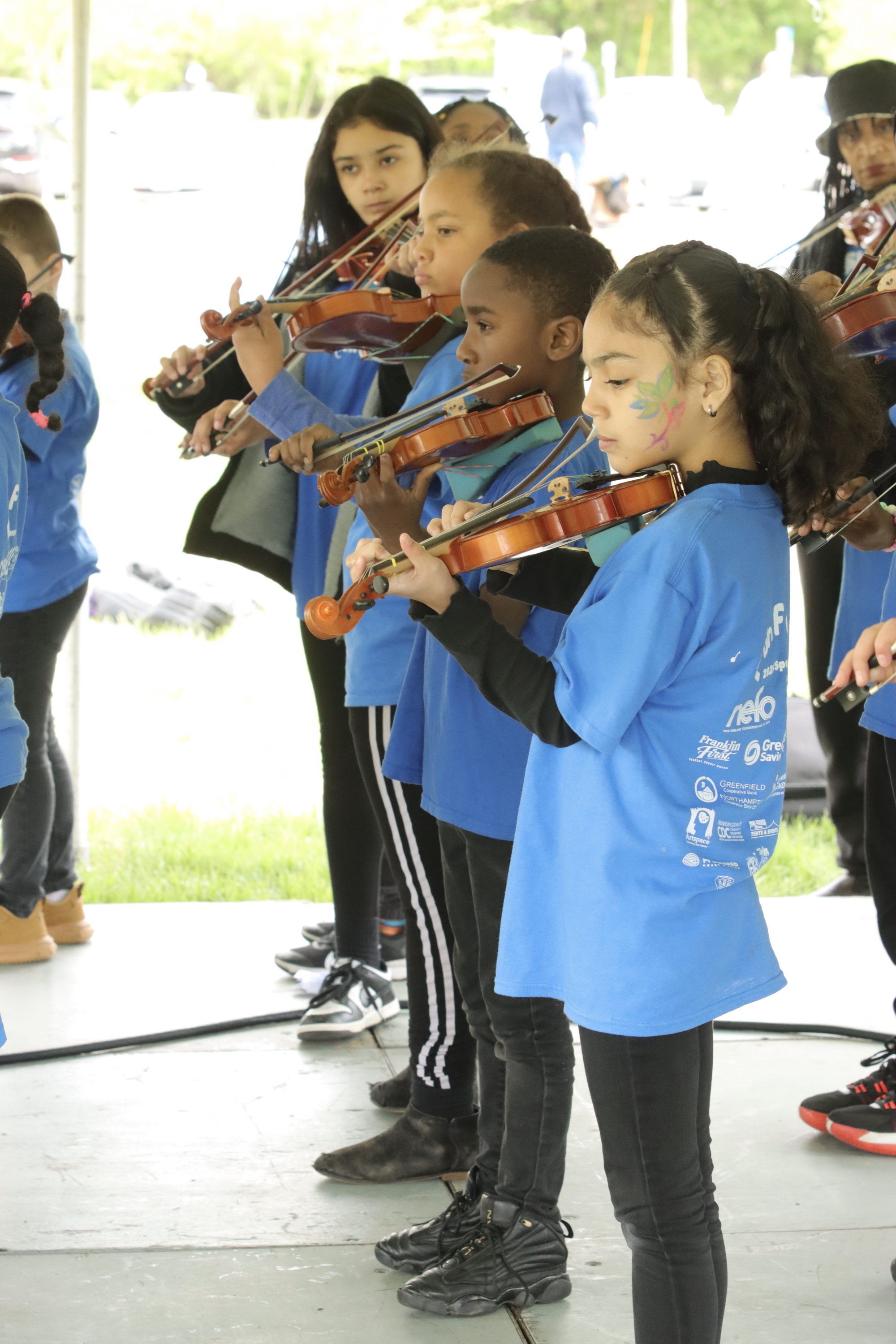 Música Franklin is a free after-school music and social justice program for students in elementary, middle, and high school in Franklin County. All students participate in ensemble-based singing, drumming, step-dancing, and either violin or cello. Students also receive instruction on piano, ukulele, and music theory. In weekly social justice discussions, students learn to give voice and context to their lived experiences and to discuss current events and issues in a safe environment. We serve a diverse group of students from many different backgrounds. Our curriculum includes classical music alongside many other genres of music, from spirituals and protest songs to folk songs from Africa, Asia, and Europe, as well as American music written by Black and Latino/a/e composers.